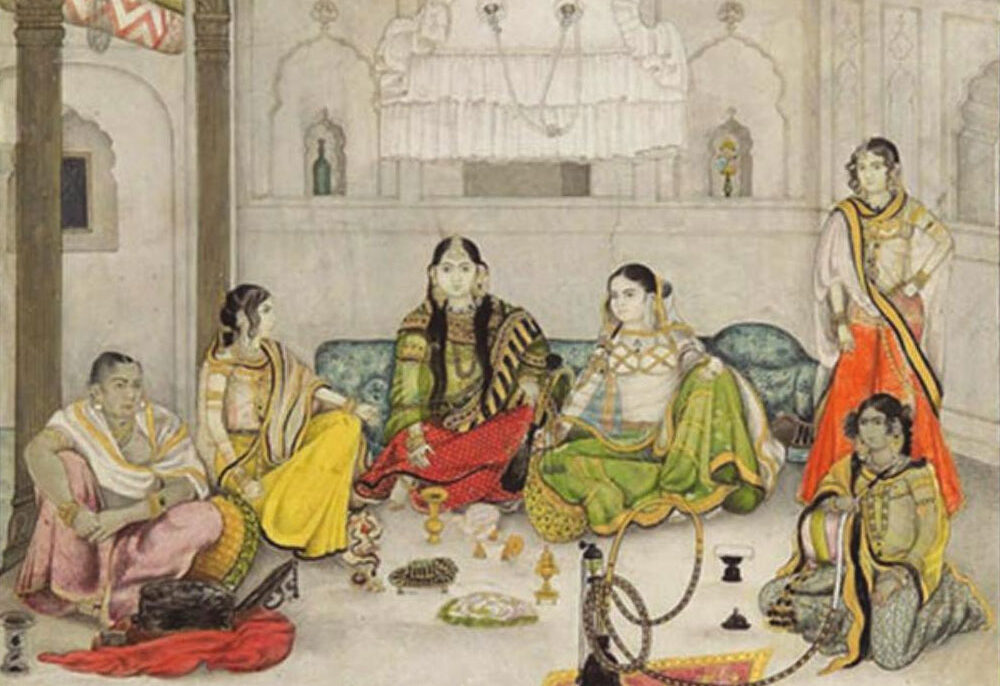 A Company-established botanical garden in Calcutta then undertook a similar project for the samples of plant life it had collected. Other influential painting centers were in Varanasi, a major Hindu pilgrimage site that drew many tourists (who knew it as Benares), and Madras, where Lord and Lady Clive were stationed from 1798 to 1804. Delhi’s market expanded after the city’s occupation by the British in 1803. Its magnificent Mughal monuments were the most popular subjects, and its artists were unique in using ivory as a base for painting. Other common subjects from this time were the residences, servants, carriages, horses, and other possessions that Company employees had amassed; Lady Impey was the patron of a number of such scenes.